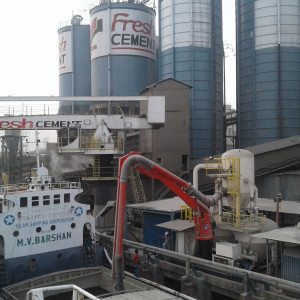 The ship unloader is stationary and placed on a jetty at the riverfront. The unloader has a 3-kettle system with 1 filter receiver and 2 transfer kettles, ensuring a near continuous discharge process. The ship unloader unloads typical Bangladeshi river ships and conveys the fly ash to a silo.