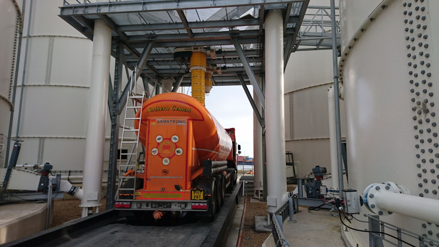 From the bottom of each silo, the cement/fly-ash can be transported to bulk trucks. The bulk trucks will be filled at a rate of 150 tons per hour.