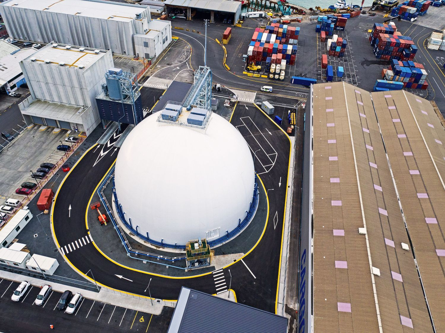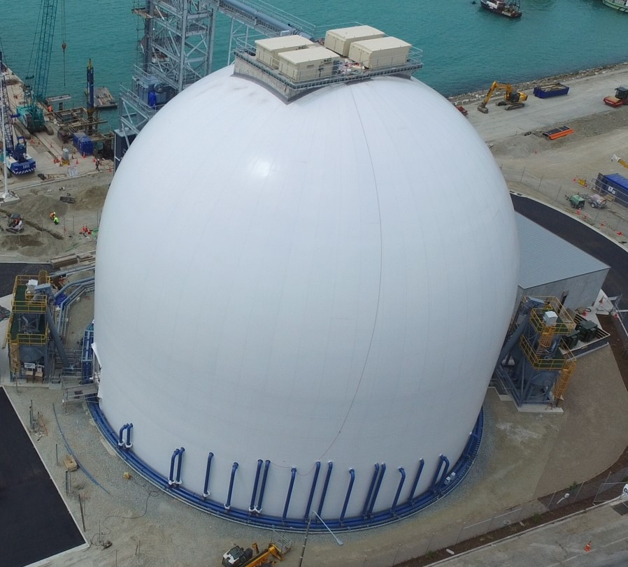 For the two terminals we designed 2 ship unloaders, 1 ship loader, 4 convey units and the aerated floors of the domes – each cement storage dome has a storage capacity of 30.000 ton.